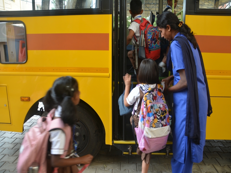 School is operating its own Fleet of buses for transporting student to and fro from the fixed routes.