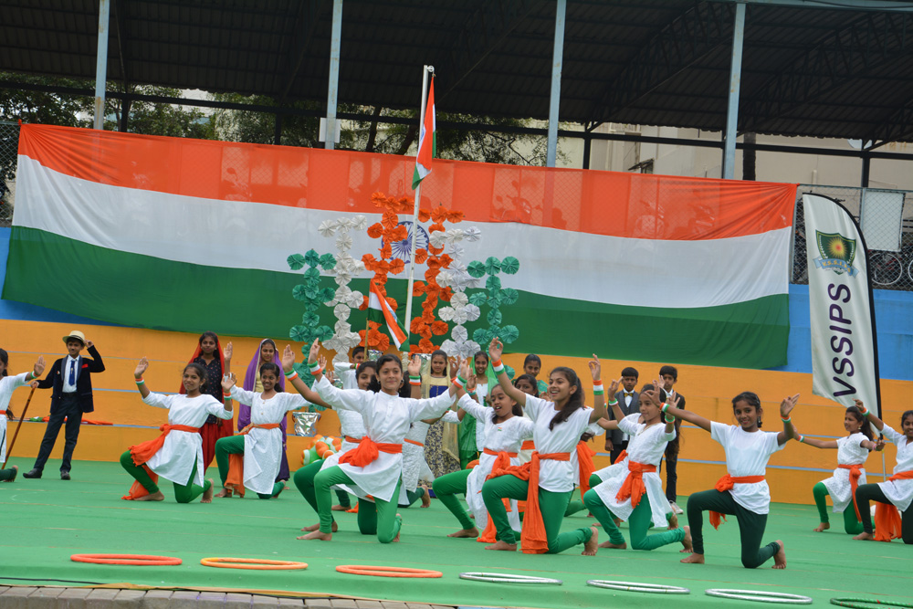 “Ask not what your country can do for you, ask what you can do for your country!” –Jawaharlal Nehru.VSS Students, teachers and non-teaching staff celebrated Independence Day with unprecedented patriotic fervor on 15th August 2018. The programme commenced with flag hoisting by Mr. Mallikarjun M. Police Sub Inspector (PSI), Jnanabharathi Police Station, Bengaluru. AISSE toppers were honoured. Students from different classes conveyed the important message of patriotism and national spirit through a skit, dance and patriotic songs.
